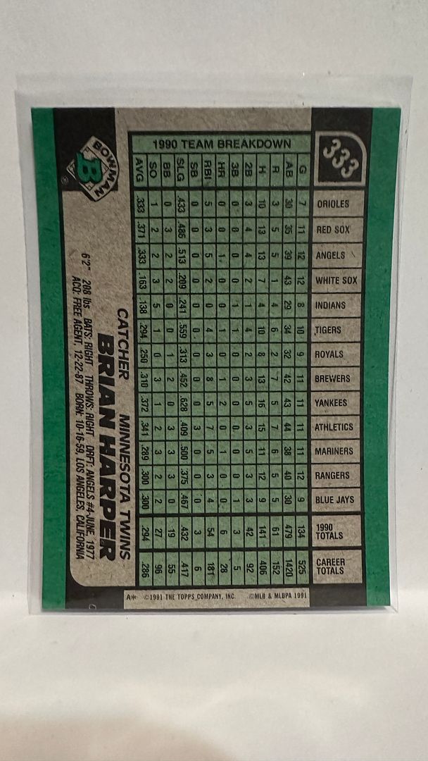 #333 Brian Harper Minnesota Twins 1991 Bowman Baseball Card