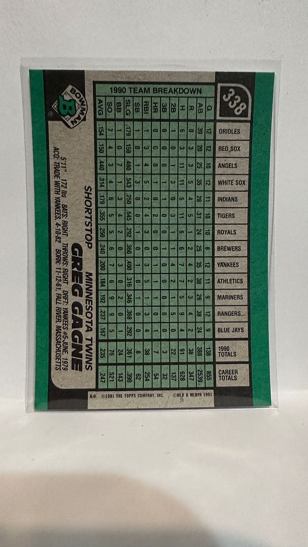 #338 Gregg Gagne Minnesota Twins 1991 Bowman Baseball Card