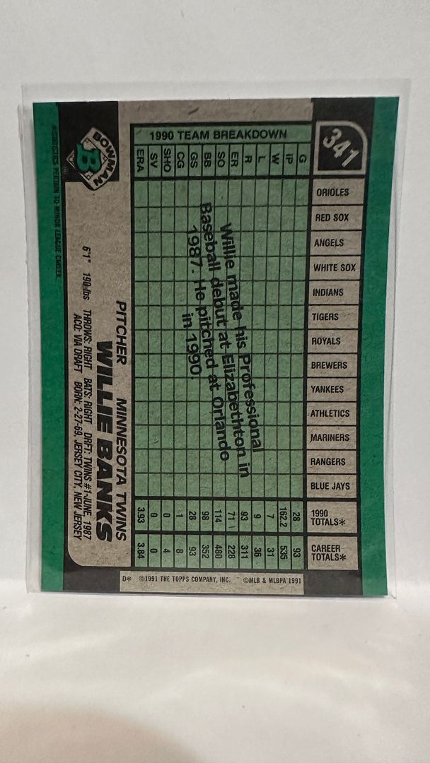 #341 Willie Banks Minnesota Twins 1991 Bowman Baseball Card