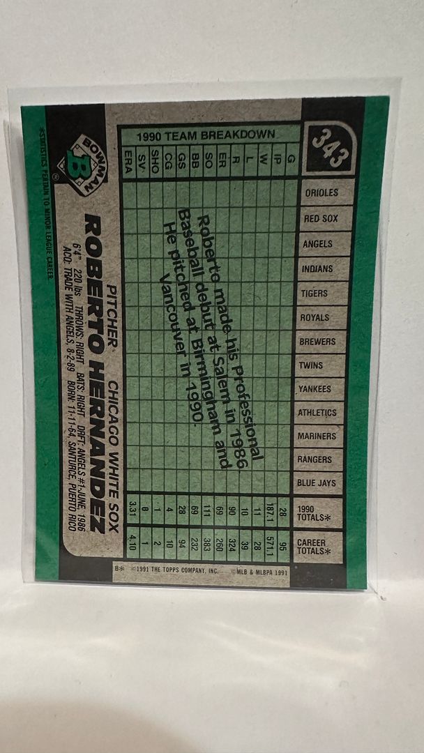 #343 Roberto Hernandez Chicago White Sox 1991 Bowman Baseball Card