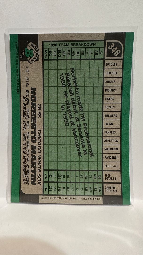 #346 Norberto Martin Chicago White Sox 1991 Bowman Baseball Card