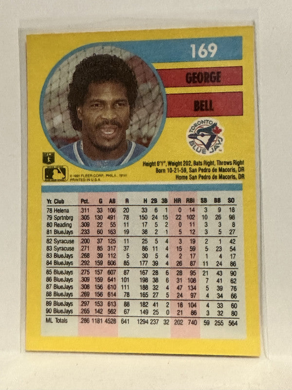 #169 George Bell Toronto Blue Jays 1991 Fleer Baseball Card