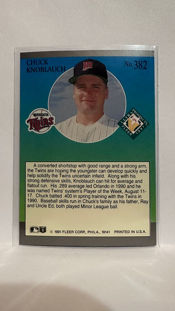 #382 Chuck Knoblauch Minnesota Twins 1991 Fleer Ultra Baseball Card