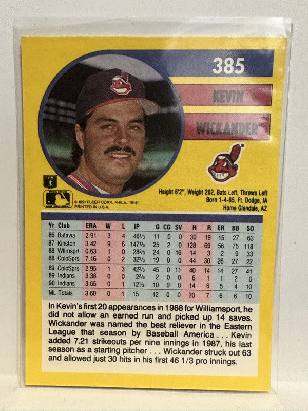 #385 Kevin Wickander Cleveland Indians 1991 Fleer Baseball Card