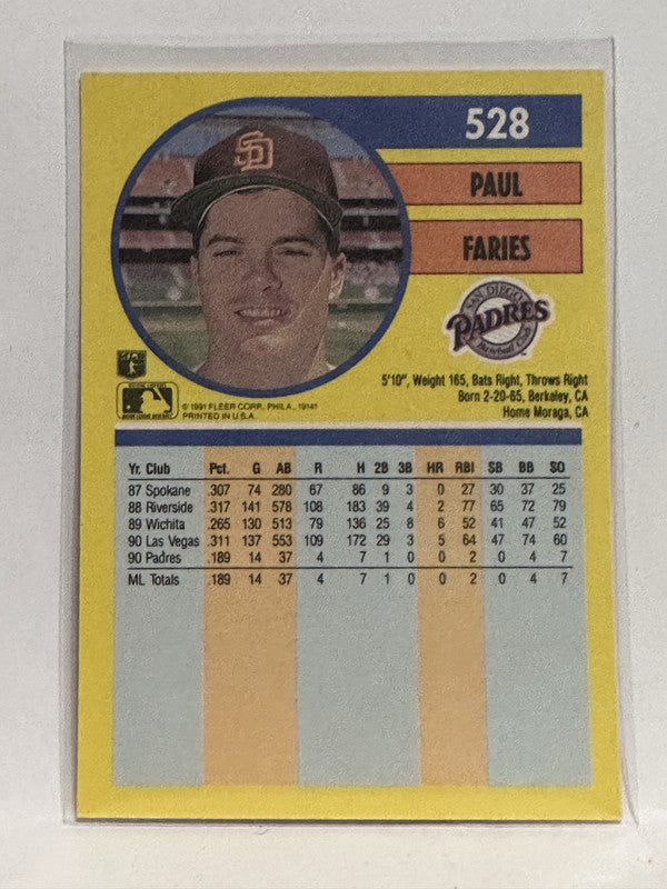 #528 Paul Faries San Diego Padres 1991 Fleer Baseball Card