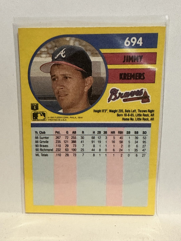 #694 Jimmy Kremers Atlanta Braves 1991 Fleer Baseball Card