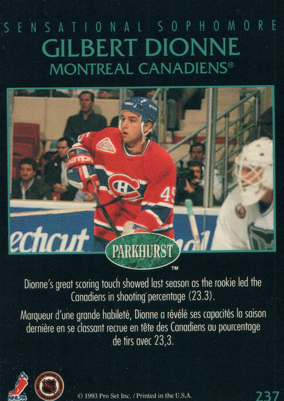 #237 Gilbert Dionne Montreal Canadiens 1992-93 Parkhurst Hockey Card OZD