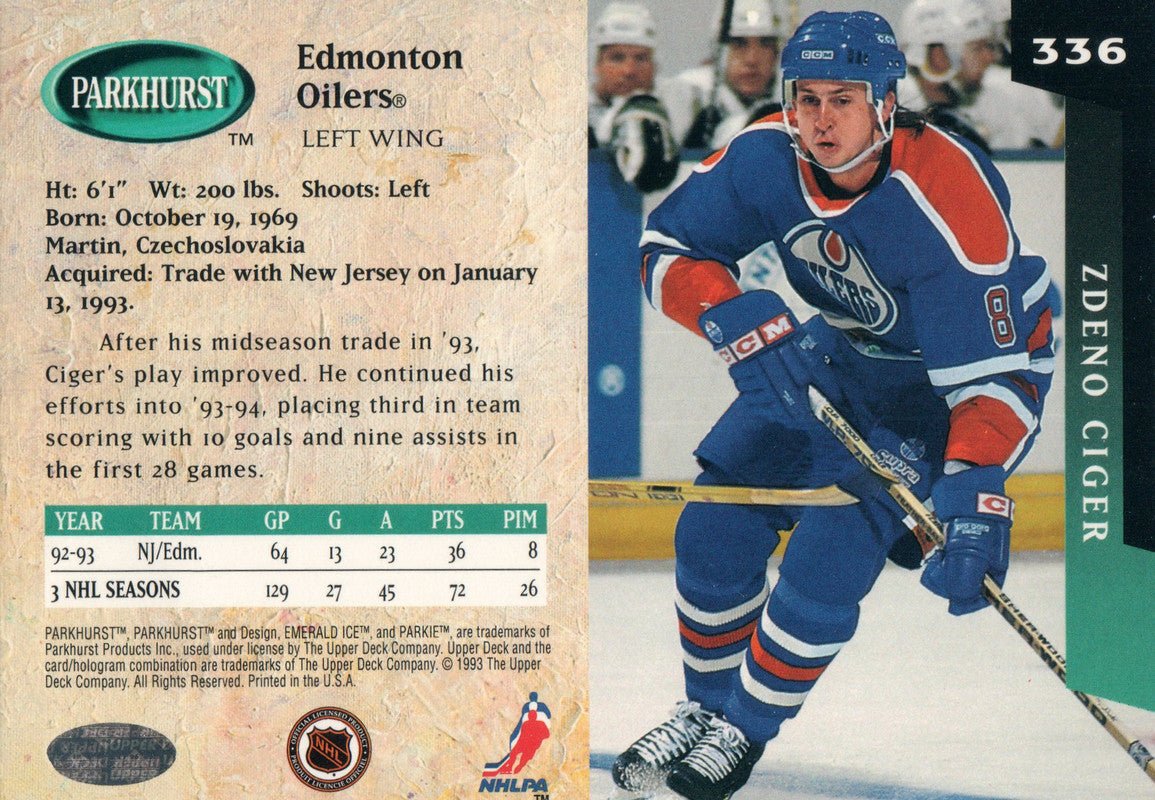 #336 Zdeno Ciger Edmonton Oilers 1992-93 Parkhurst Hockey Card OZA
