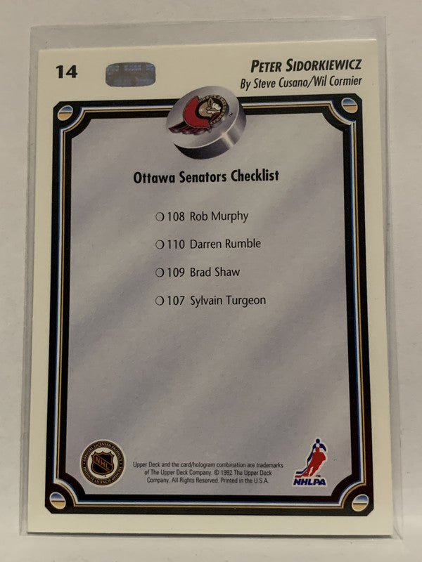 #14 Peter Sidorkiewicz Checklist Ottawa Senators 1992-93 Upper Deck Hockey Card NHL