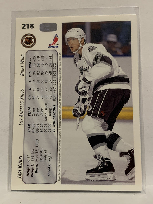 #218 Jari Kurri Los Angeles Kings 1992-93 Upper Deck Hockey Card NHL
