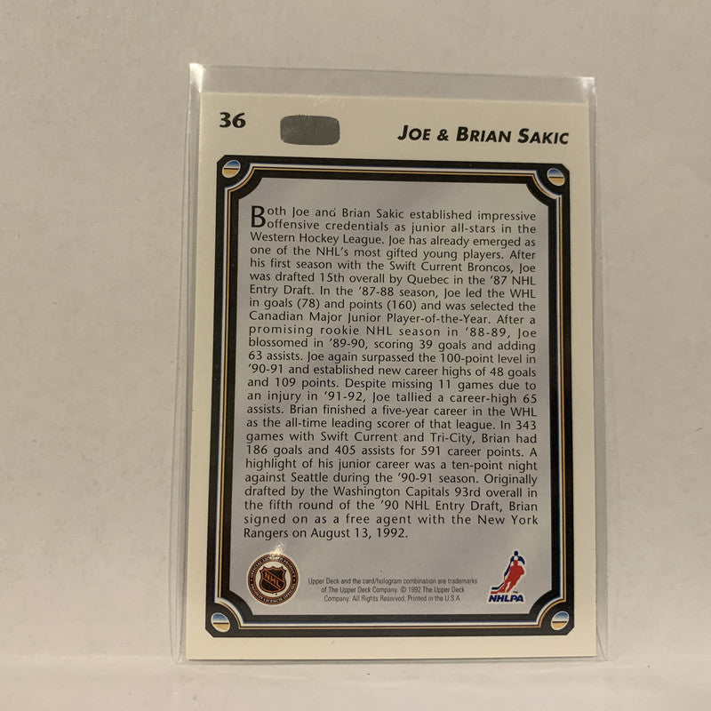 #36 Joe Brian Sakic Bloodlines 1992-93 Upper Deck Hockey Card A2H