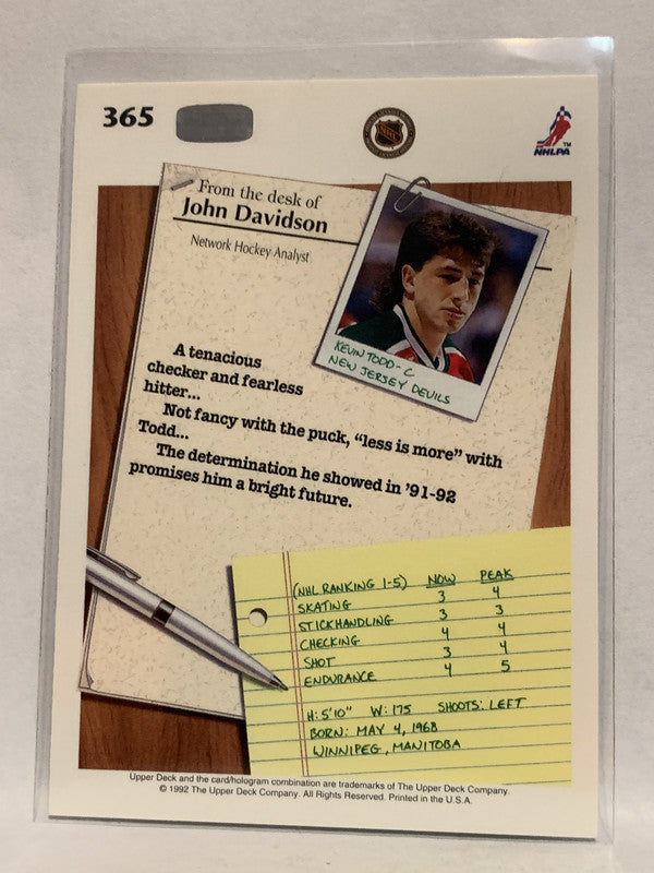 #365 Kevin Todd Rookie New Jersey Devils 1992-93 Upper Deck Hockey Card NHL