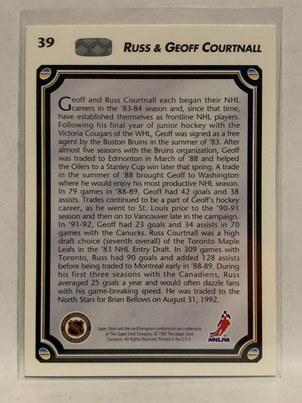 #39 Russ & Geoff Courtnall Bloodlines 1992-93 Upper Deck Hockey Card NHL