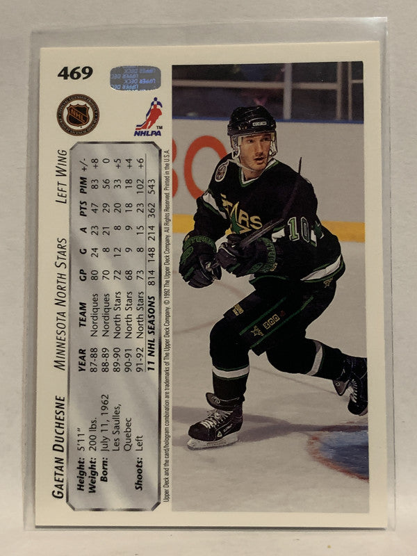 #469 Gaetan Duchesne Minnesota North Stars 1992-93 Upper Deck Hockey Card