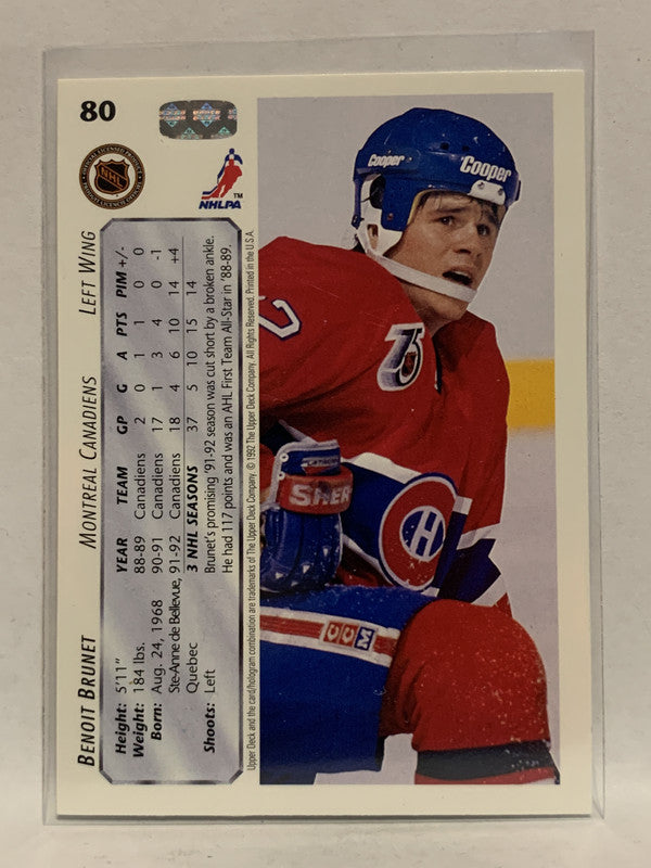 #80 Benoit Brunet Montreal Canadiens 1992-93 Upper Deck Hockey Card NHL