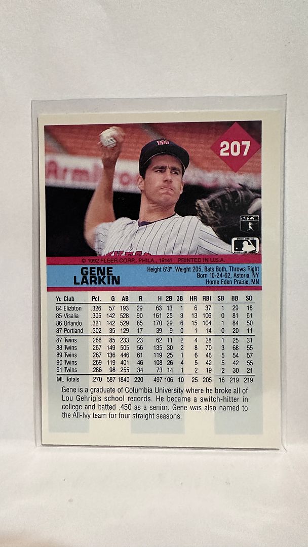 #207 Gene Larkin Minnesota Twins 1992 Fleer Baseball Card