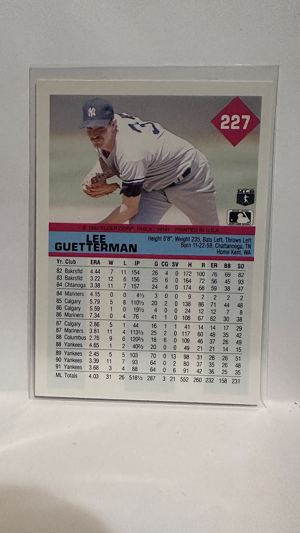 #227 Lee Guetterman New York Yankees 1992 Fleer Baseball Card
