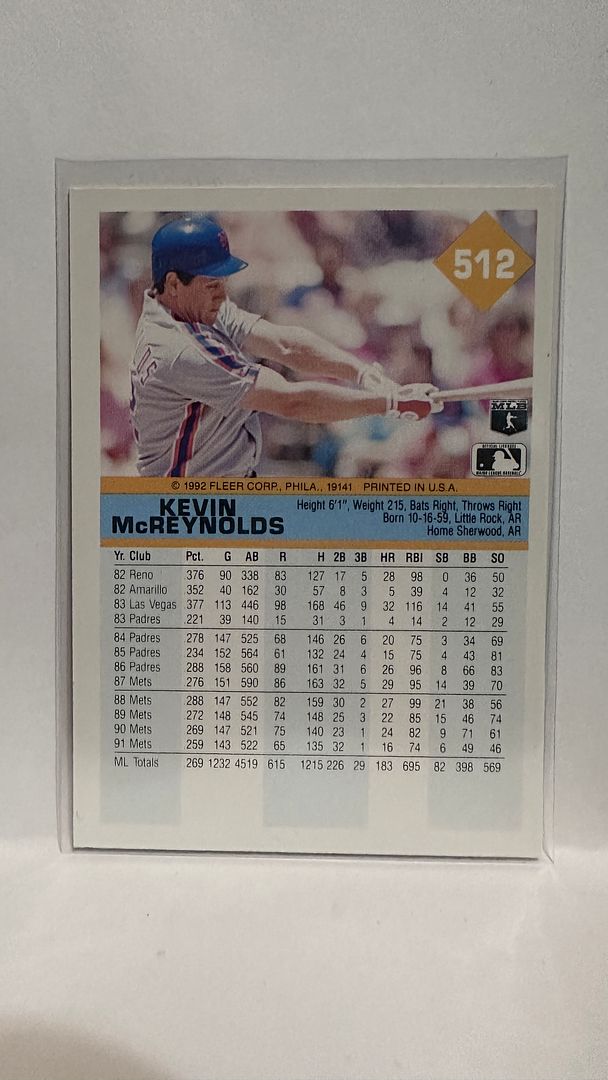 #512 Kevin McReynolds New York Mets 1992 Fleer Baseball Card
