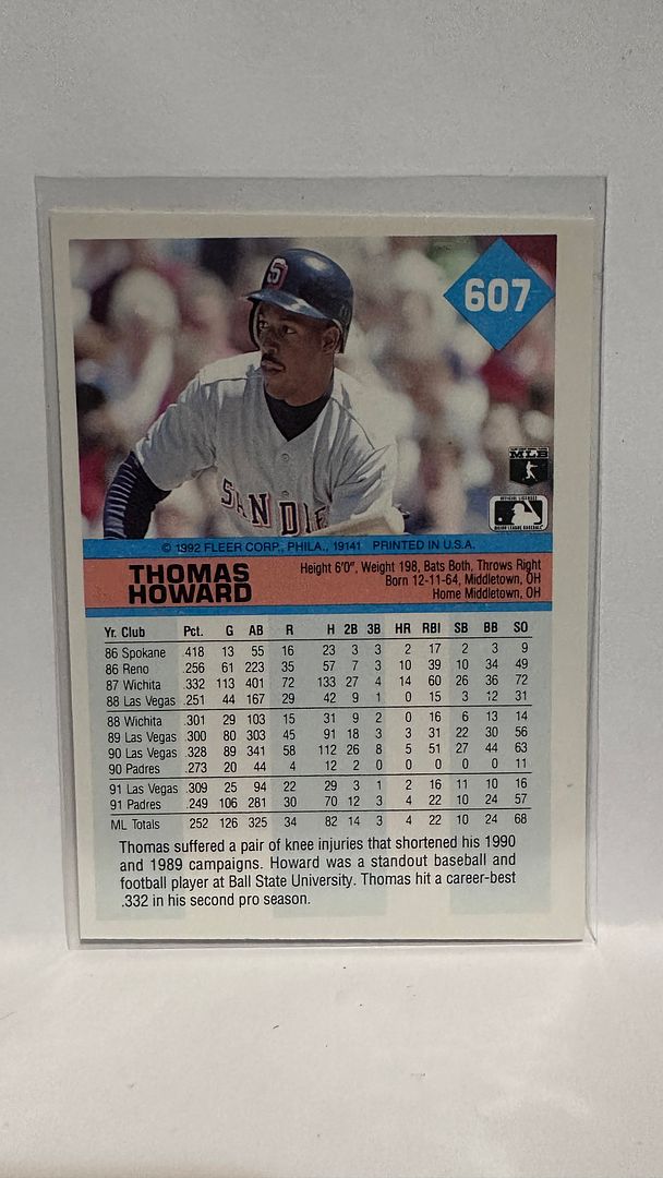 #607 Thomas Howard SAN Diego Padres 1992 Fleer Baseball Card