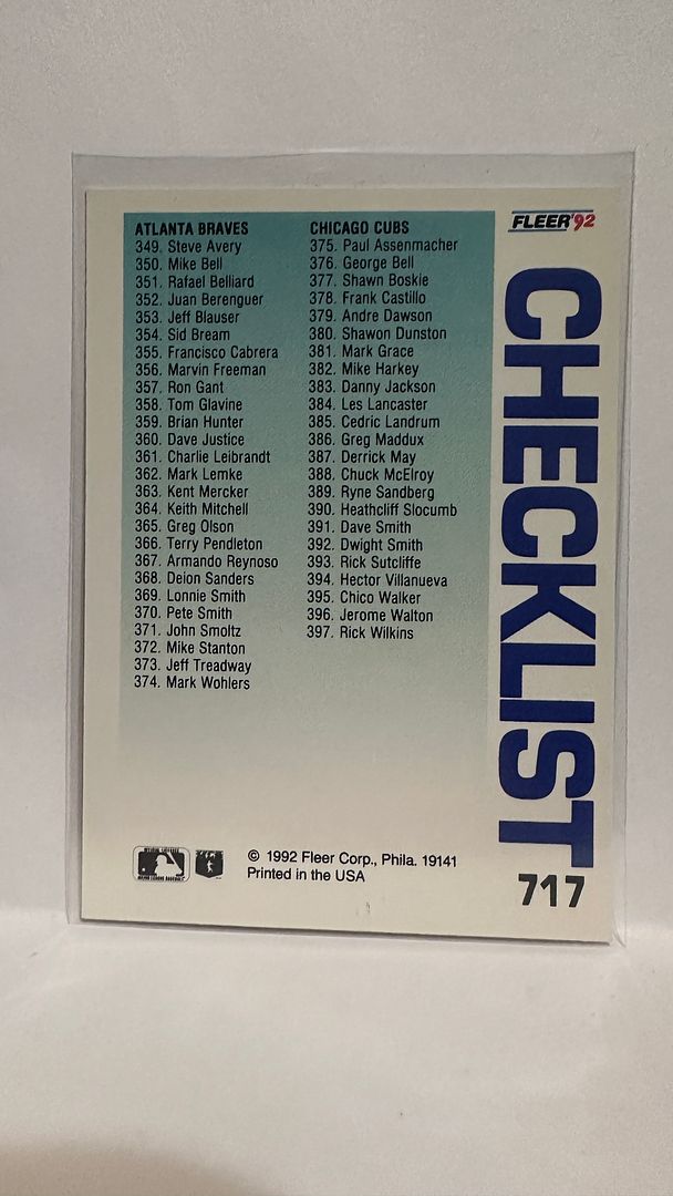 #717 Checklist 1992 Fleer Baseball Card