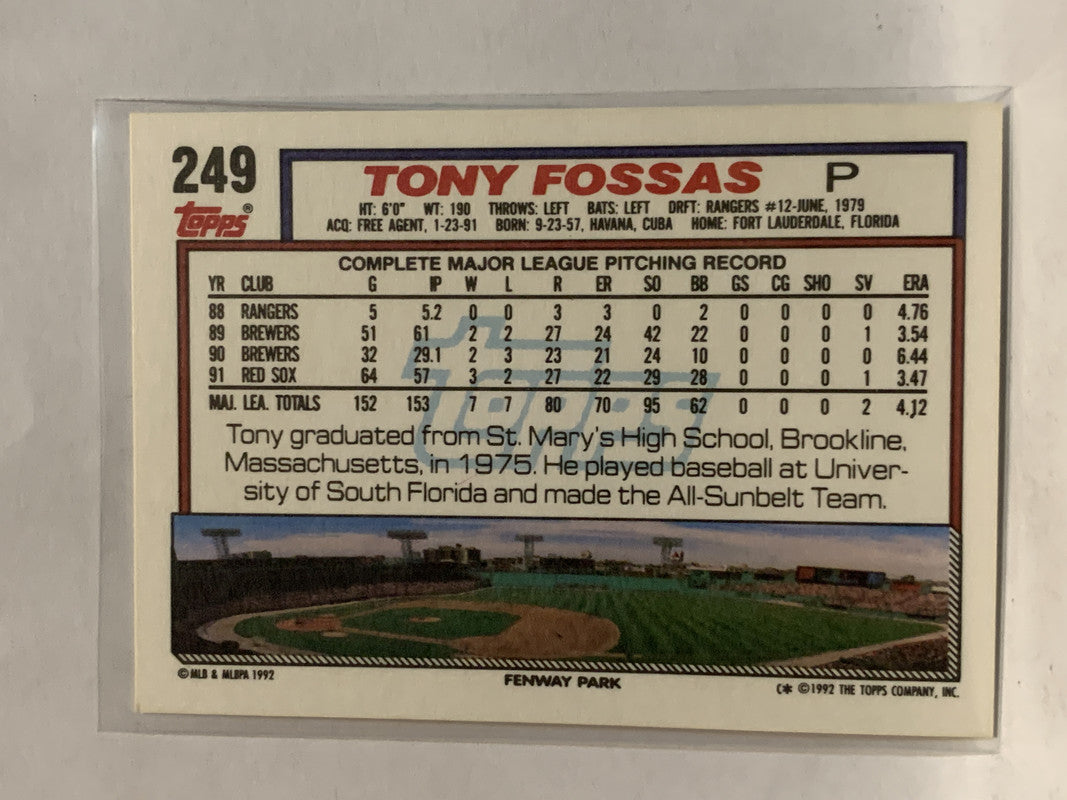 #249 Tony Fossas Boston Red Sox 1992 Topps Baseball Card
