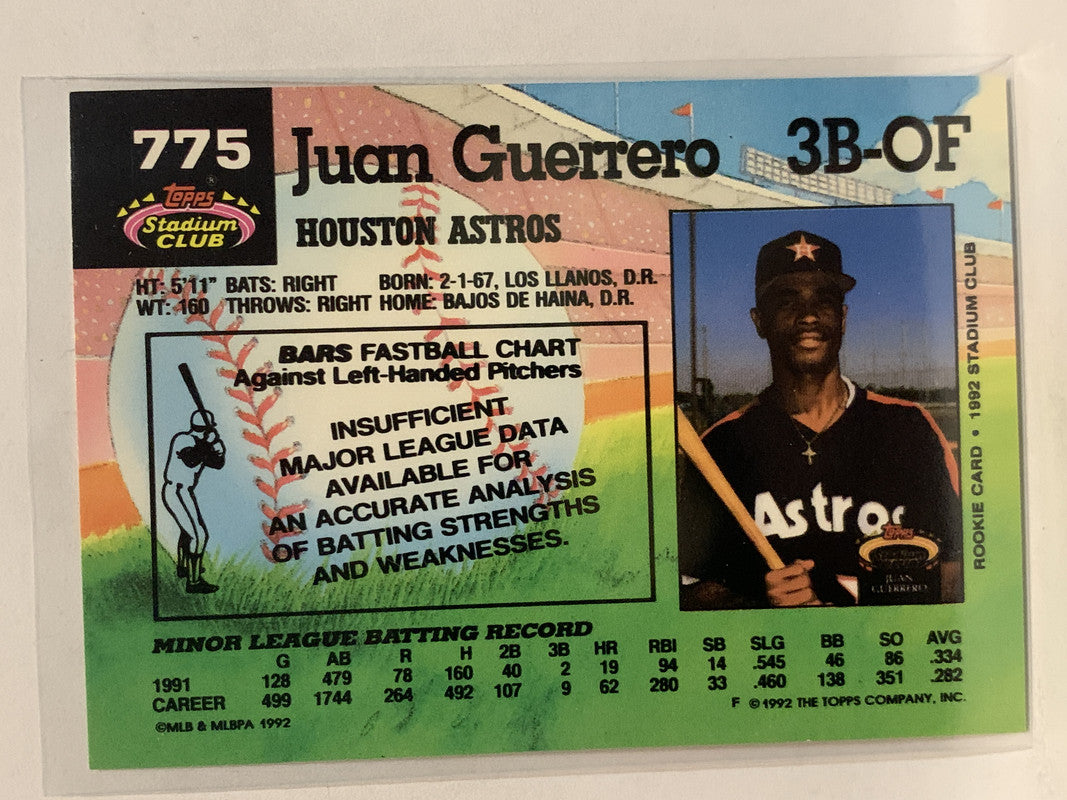 #775 Juan Guerrero Houston Astros 1992 Topps Stadium Club Baseball Card