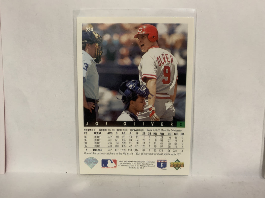 #234 Joe Oliver Cincinnati Reds 1992 Upper Deck Baseball Card NA