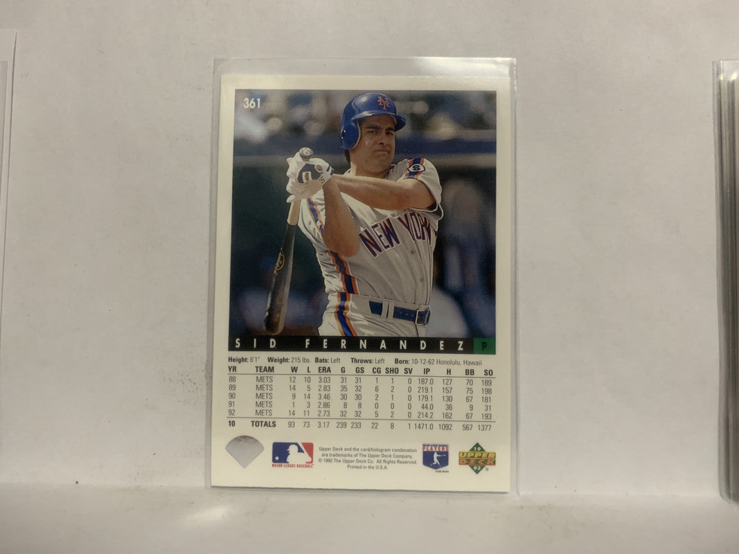 #361 Sid Fernandez New York Mets 1992 Upper Deck Baseball Card NB