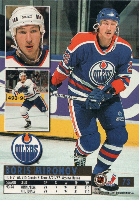 #73 Boris Mironov Edmonton Oilers 1993-94 Fleer Ultra Hockey Card OL