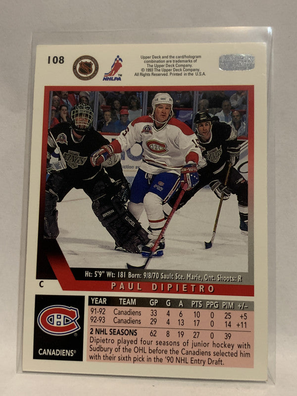 #108 Paul Dipietro Montreal Canadiens 1993-94 Upper Deck Hockey Card NHL