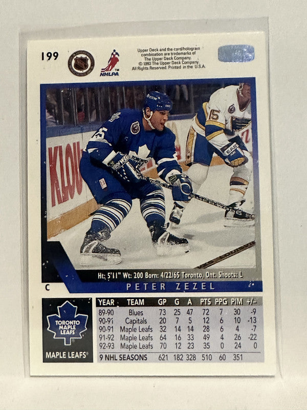 #199 Peter Zezel Toronto Maple Leafs 1993-94 Upper Deck Hockey Card