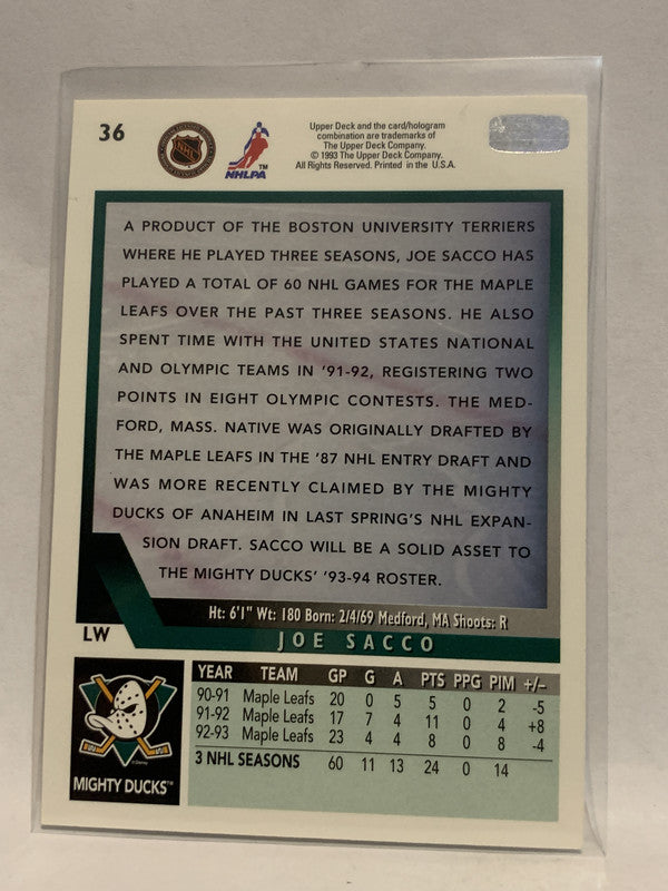 #36 Joe Sacco Anaheim Ducks 1993-94 Upper Deck Hockey Card NHL