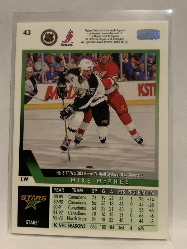 #43 Mike Mcphee Dallas Stars 1993-94 Upper Deck Hockey Card NHL