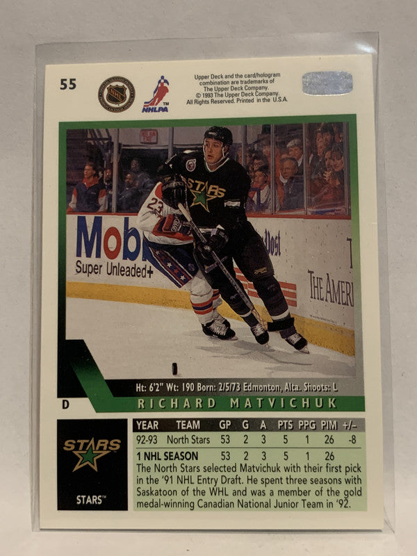 #55 Richard Matvichuk Dallas Stars 1993-94 Upper Deck Hockey Card NHL