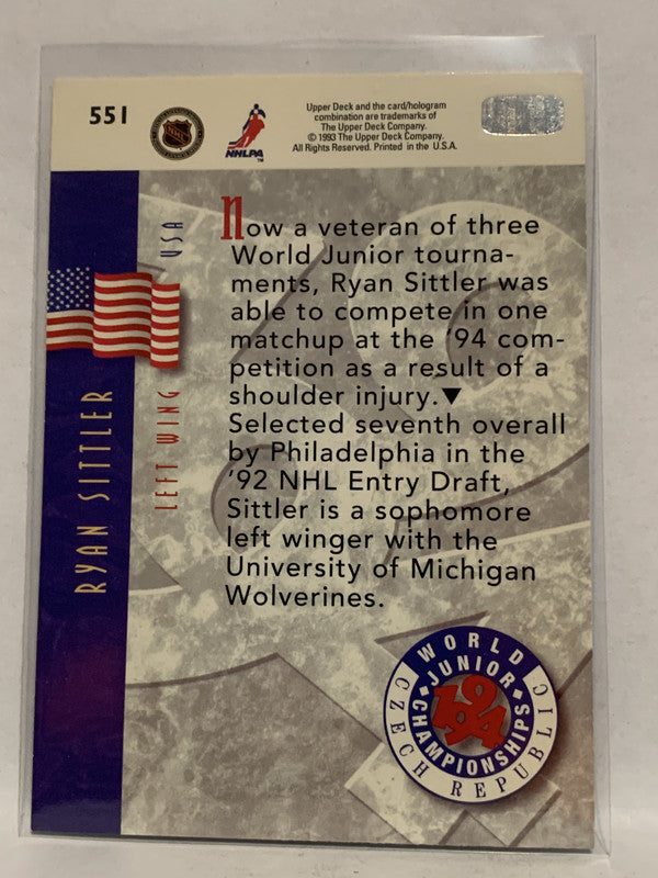 #551 Ryan Sittler World Junior Champions 1993-94 Upper Deck Hockey Card NHL
