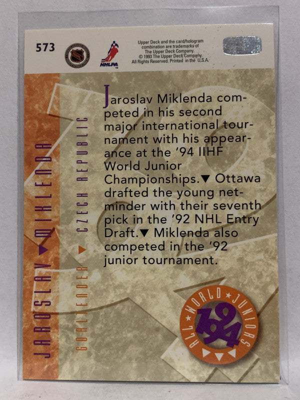 #573 Jaroslav Miklenda Czech Republic 1993-94 Upper Deck Hockey Card NHL