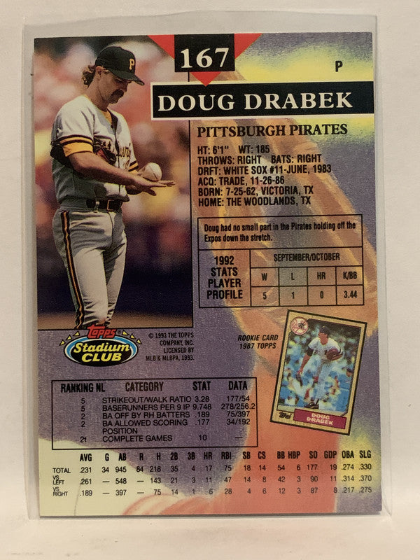 #167 Doug Drabek Pittsburgh Pirates 1993 Topps Stadium Club Baseball Card