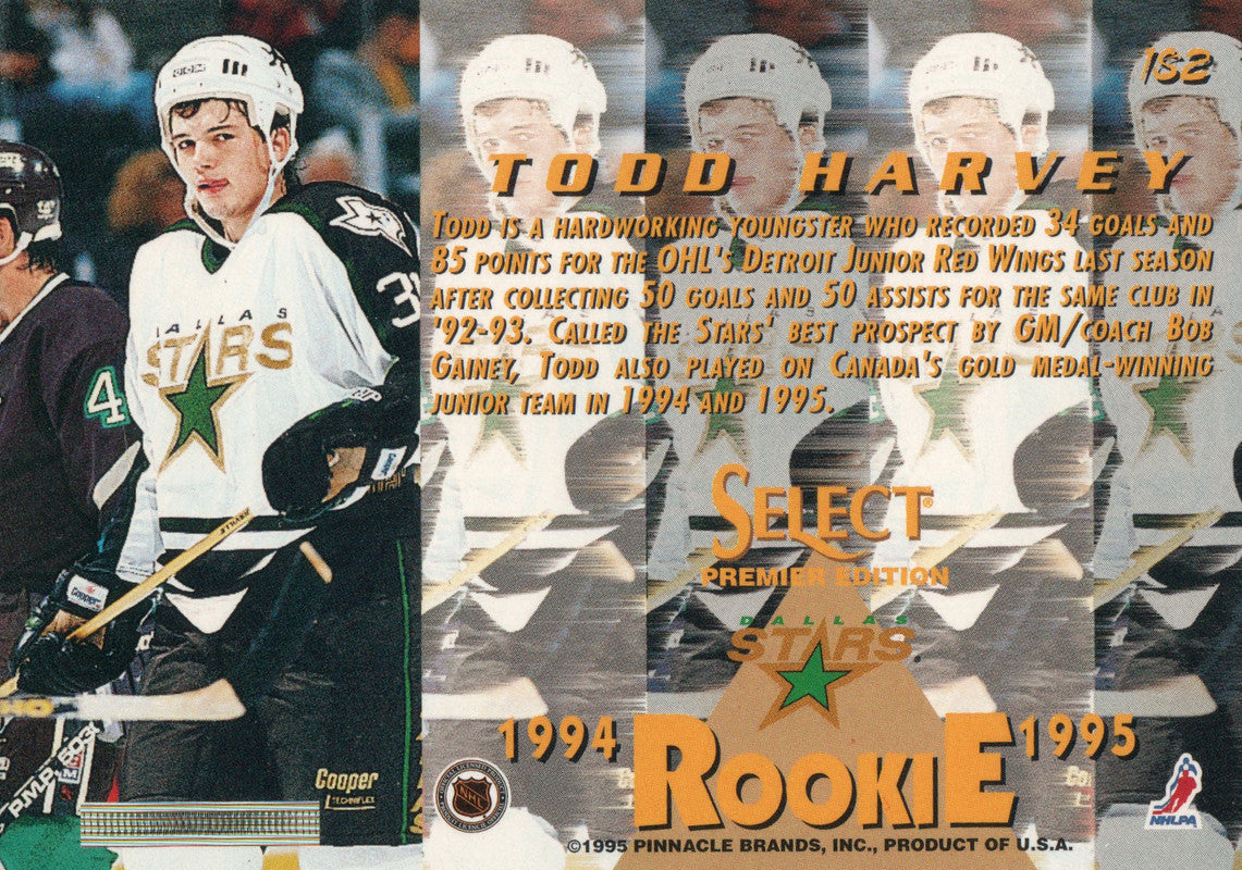 #182 Todd Harvey Rookie Dallas Stars 1994-95 Select Hockey Card OL