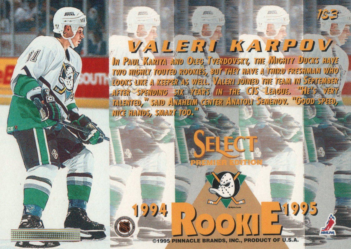 #183 Valeri Karpov Rookie Anaheim Ducks 1994-95 Select Hockey Card OL