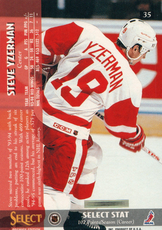 #35 Steve Yzerman Detroit Red Wings 1994-95 Select Hockey Card OZC