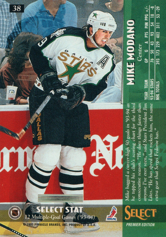 #38 Mike Modano Dallas Stars 1994-95 Select Hockey Card OZD