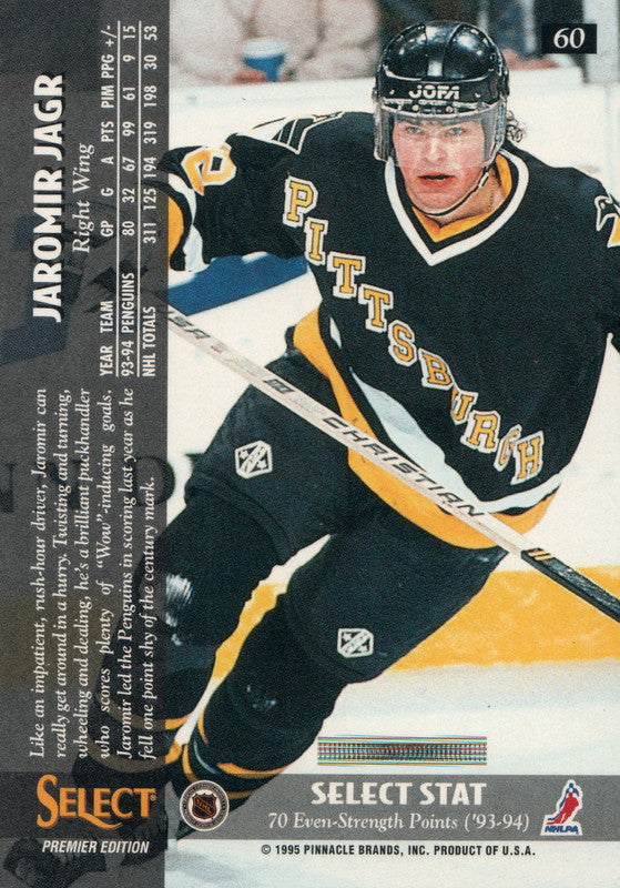 #60 Jaromir Jagr Pittsburgh Penguins 1994-95 Select Hockey Card OZD