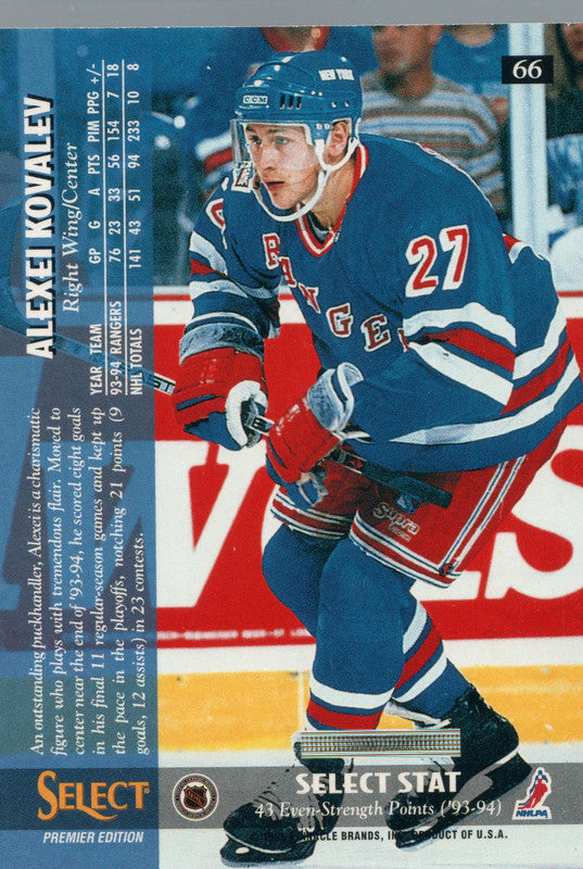 #66 Alexei Kovalev New York Rangers 1994-95 Select Hockey Card OZD