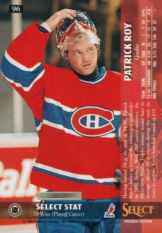 #96 Patrick Roy Montreal Canadiens 1994-95 Select Hockey Card OZD