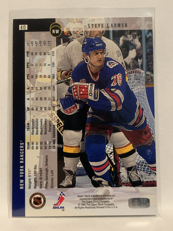 #40 Steve Larmer New York Rangers 1994-95 Upper Deck Hockey Card