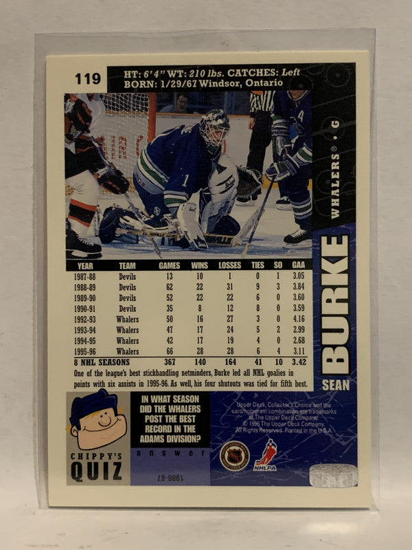 #119 Sean Burke Hartford Whalers 1996-97 Upper Deck Collector's Choice Hockey Card