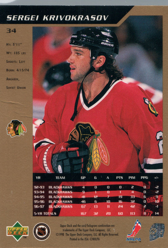#34 Sergei Krivokrasov Chicago Blackhawks 1998-99 SP Authentics Hockey Card OH