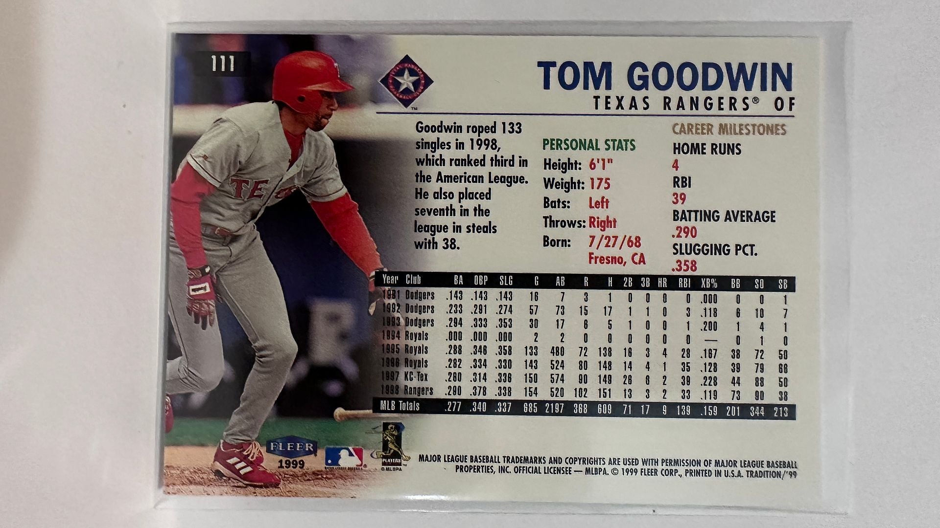#111 Tom Goodwin Texas Rangers 1999 Fleer Tradtion Baseball Card