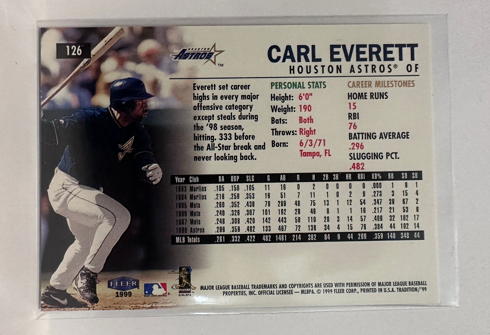 #126 Carl Everett Houston Astros 1999 Fleer Tradtion Baseball Card