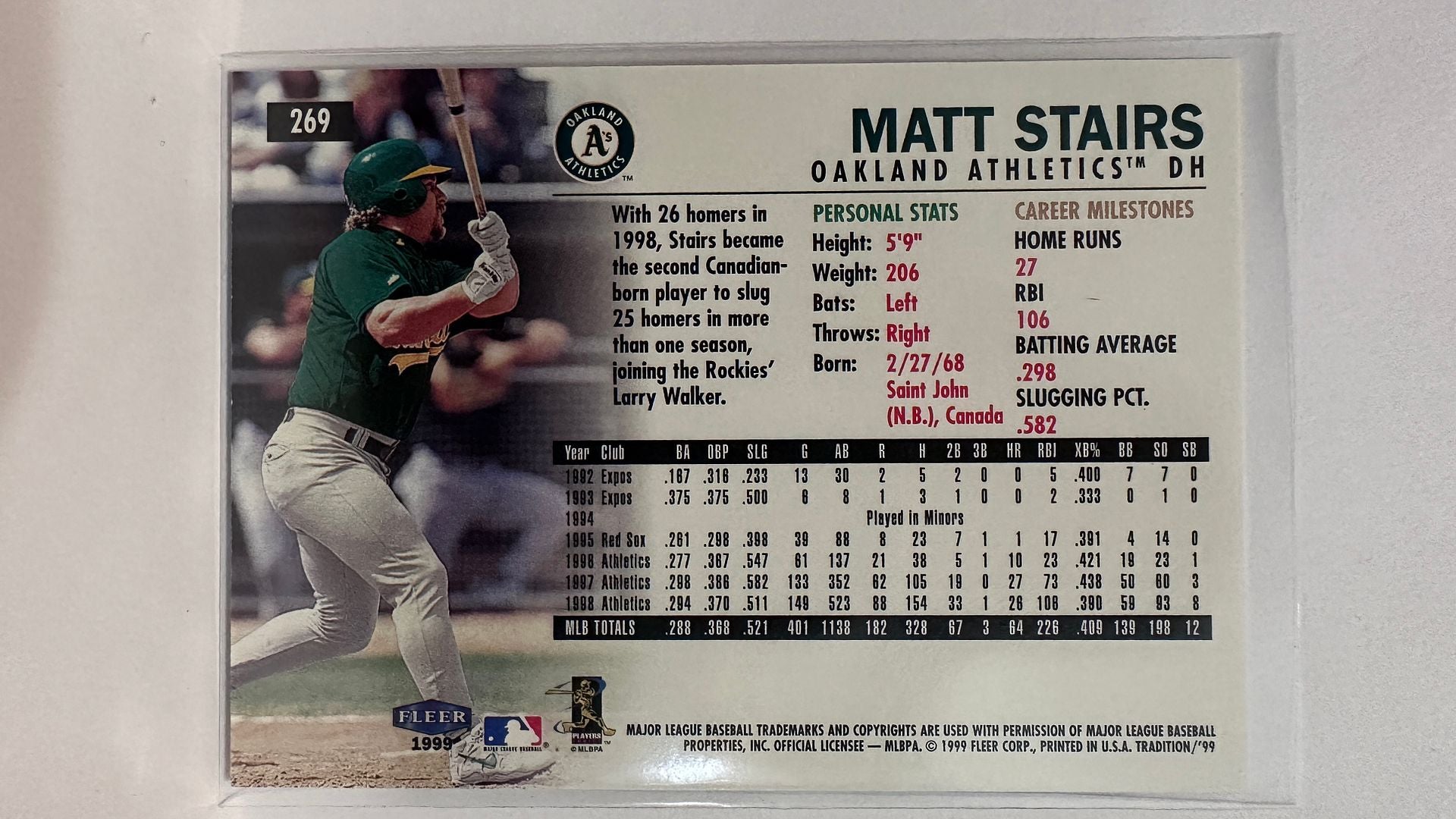 #269 Matt Stairs Oakland Athletics 1999 Fleer Tradtion Baseball Card